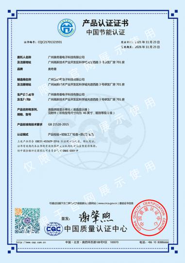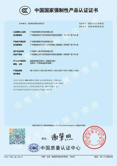公司擁有數十項產品專利,數十項計算機軟件著作權等多項自主知識產權,陸續榮獲中國安防企業百強、最具影響力十大品牌,平安城市推薦品牌,中國安防行業智慧城市推薦品牌,廣東省平安城市建設突出貢獻獎,廣東省守合同重信用企業等殊榮,所有顯示產品均擁有中國3C認證、中國節能認證、檢驗報告等權威認證。